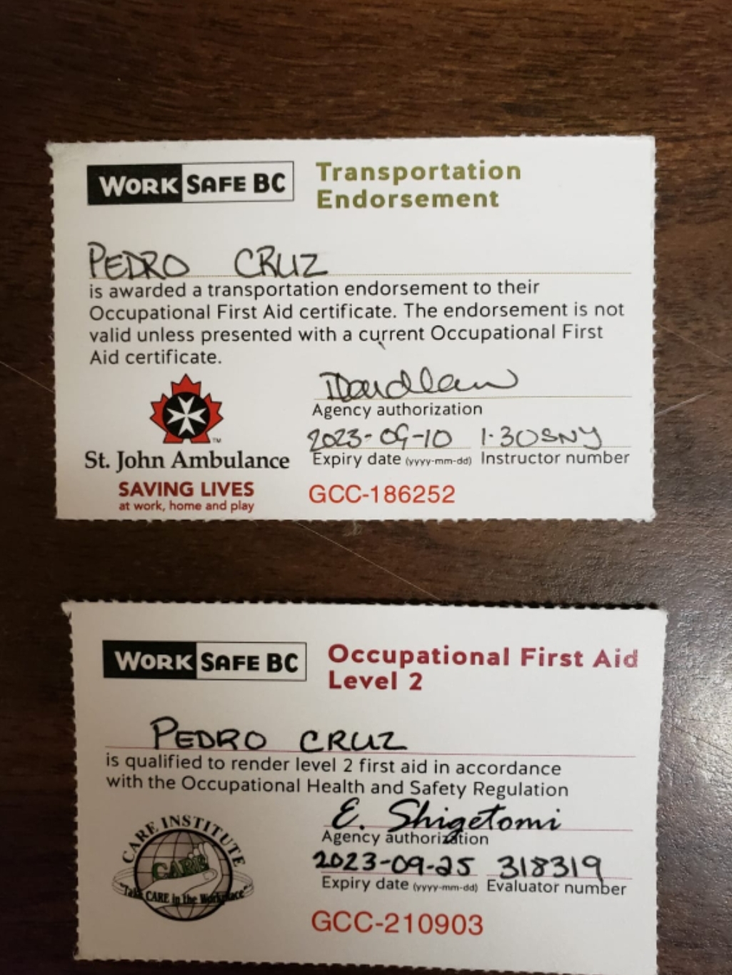 | 03 Intermediate First Aid | OFA | N/A | Sep 25, 2020 | Sep 25, 2023 | View | ||