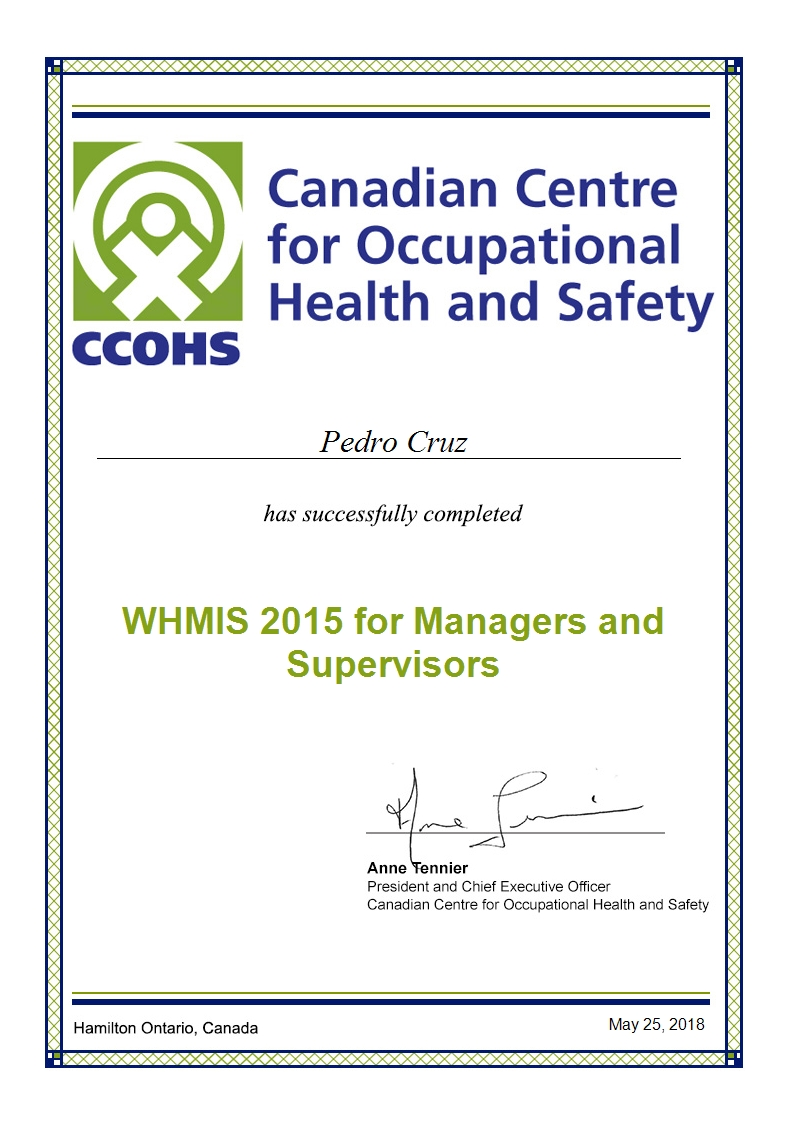 | 05 WHMIS | COHS | N/A | May 25, 2018 | May 25, 2025 | View | ||